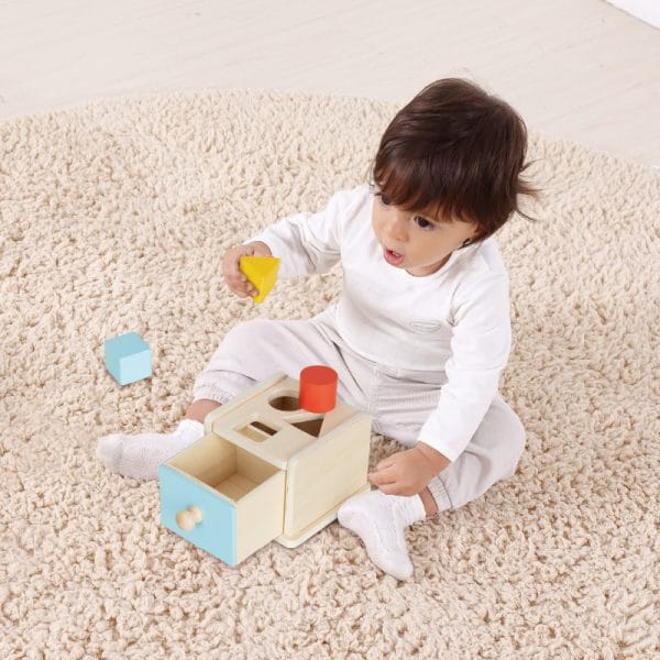 🧩 Sortierbox für geometrische Formen mit Schublade – hilft dem Kind, Formen und Farben zu erkennen und präzise Bewegungen zu üben.